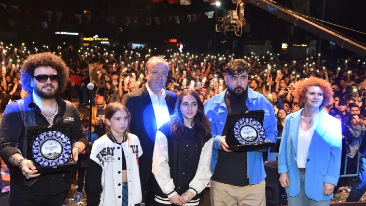 Avcılar Belediye Başkanı Turan Hançerli sevilen sanatçılara teşekkür ederek çiçek ve plaket takdim etti.