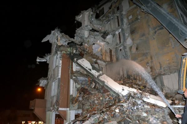 Şikayetlerin artması üzerine gelen polis ekipleri çalışmanın hızlandırılmasını ve yıkımın bitirilmesini istedi. Çalışmalarda tehlike oluşturan kolonlar ve katların ayakta kalan parçaları saat 01.00 sıralarında kısmen kaldırıldı. D-100 karayoluna moloz parçalarının düşmemesi amacıyla alınan önlemler ve yan yola düşen moloz parçaları temizlenirken yaklaşık 5 saat sonra yolun açılması sağlandı.