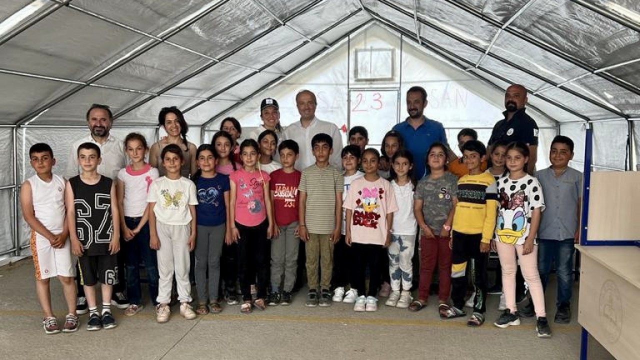 Bugün de eğitim-öğretimin yapılamaz hale geldiği Hatay merkezde, değerli öğretmenlerimizle birlikte; çocuklarımızın eğitimden uzak kalmaması için kurulumunu gerçekleştirdiğimiz 19 çadır okulun ilki olan Karaali Mahallesi'ndeki okulumuzdayız. Çocuklarımıza sürpriz yapmak istedim.