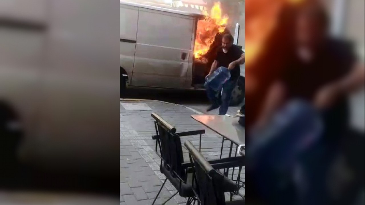 Bu sırada bir vatandaşın minibüsün arka kısmında bulunan su dolu damacanalardan birini alarak, alevleri söndürmeye çalıştığı görüldü. İhbar üzerine olay yerine gelen itfaiye ekipleri yangını kısa sürede söndürürken, kapalı kasa minibüs kullanılamaz hale geldi.