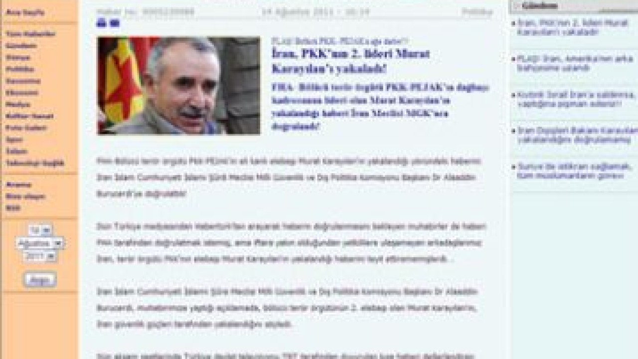 Dün Türkiye medyasından Habertürk’ten arayarak haberin doğrulanmasını bekleyen muhabirler de haberi FHA tarafından doğrulatmak istemiş, ama iftara yakın olduğundan yetkililere ulaşamayan arkadaşlarımız İran, terör örgütü PKK'nın elebaşı Murat Karayılan'ın yakalandığı haberini teyit ettirememişlerdi. .