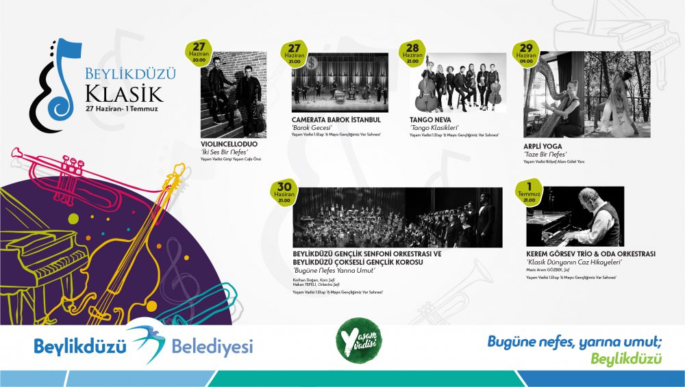 Bu yıl ki teması “Gece Klasikleri” olan Beylikdüzü Klasik Müzik Günleri ise 27 Haziran- 1 Temmuz tarihleri arasında gerçekleşecek. Sekizincisi düzenlenecek olan müzik günlerinin başlangıcını Violincelloduo grubu “İki Ses Bir Nefes” isimli müzik dinletisiyle yapacak. Saat 20.00’da Yaşam Vadisi’nin girişinde müzikseverleri karşılayacak olan ekibin ardından saat 21.00’da Camerata Barok İstanbul ekibi, 6 Mayıs Gençliğimiz Var Sahnesi’nde “Barok Gecesi” isimli konserleriyle izleyicilere unutulmaz bir gece yaşatacak. Beylikdüzü Klasik Müzik Günleri’nin ikinci gününde de “Tango Klasikleri” konseriyle Tango Neva grubu sahne alacak. 29 Haziran Çarşamba günü saat 09.00’da Yaşam Vadisi Rölyef Alanı’nda Arpli Yoga grubu "Taze Bir Nefes" isimli dinletisiyle katılımcılara arp eşliğinde daha önce denemedikleri bir yoga deneyimi yaşatacak. 30 Haziran Perşembe günü ise Beylikdüzü Belediyesi Kültür İşleri Müdürlüğü bünyesinde kurulan ve yetenekli genç müzisyenlerden oluşan Beylikdüzü Gençlik Senfoni Orkestrası ile Beylikdüzü Çoksesli Gençlik Korosu sahnede yerini alacak. Etkinlik, 1 Temmuz akşamı Kerem Görsev Trio & Oda Orkestrası'nın “Klasik Dünyanın Caz Hikayeleri” isimli gala konseriyle sona erecek.