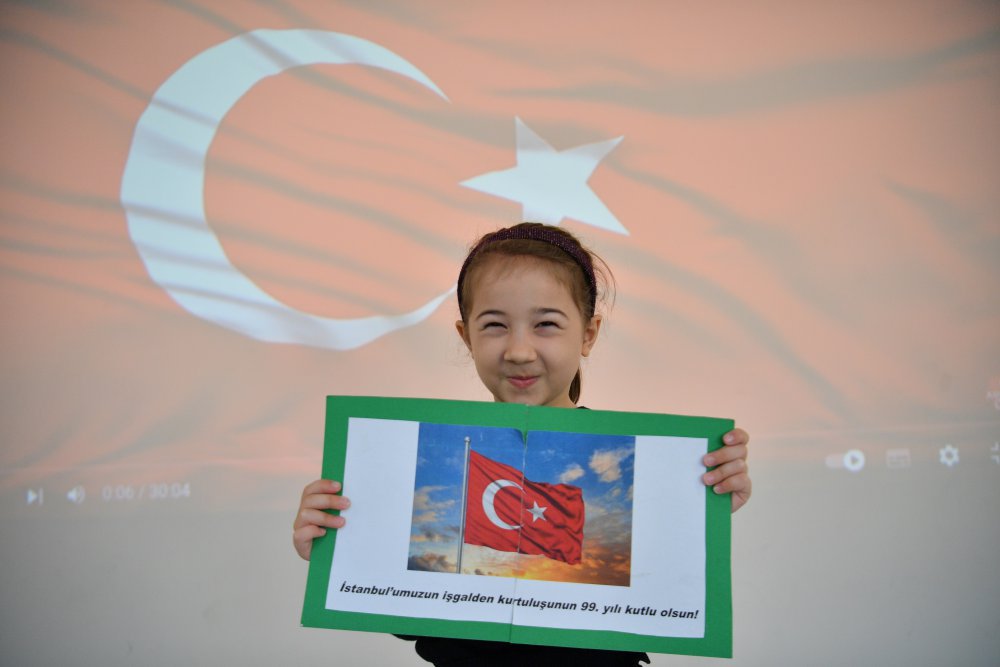 Minik öğrenciler marşlar söyleyerek İstanbul’un kurtuluşunu kutladı.
