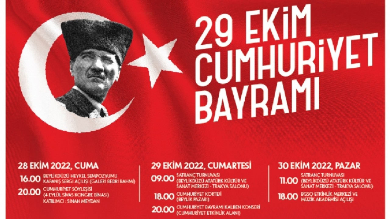 29 Ekim Cumartesi günü ise Beylikdüzü Belediyesi’nin geleneksel hale getirdiği Cumhuriyet Yürüyüşü bu yıl da yine 7’den 70’e her yaştan vatandaşın katılımıyla gerçekleşecek. Beylikdüzü Belediye Başkanı Mehmet Murat Çalık’ın önderlik edeceği kortej saat 18.00’da Beylik Pazar Alanı’ndan başlayacak ve Beylikdüzü Cumhuriyet Etkinlik Alanı’nda sona erecek. Coşkulu ve renkli anlara sahne olacak yürüyüşün ardından, saatler 20.00’ı gösterdiğinde ise Türk pop müziğinin sevilen ismi Kalben’nin etkinlik alanında vereceği ‘Cumhuriyet Konseri’nde İstanbullular, 99.yılın coşkusunu hep birlikte yaşayacak.