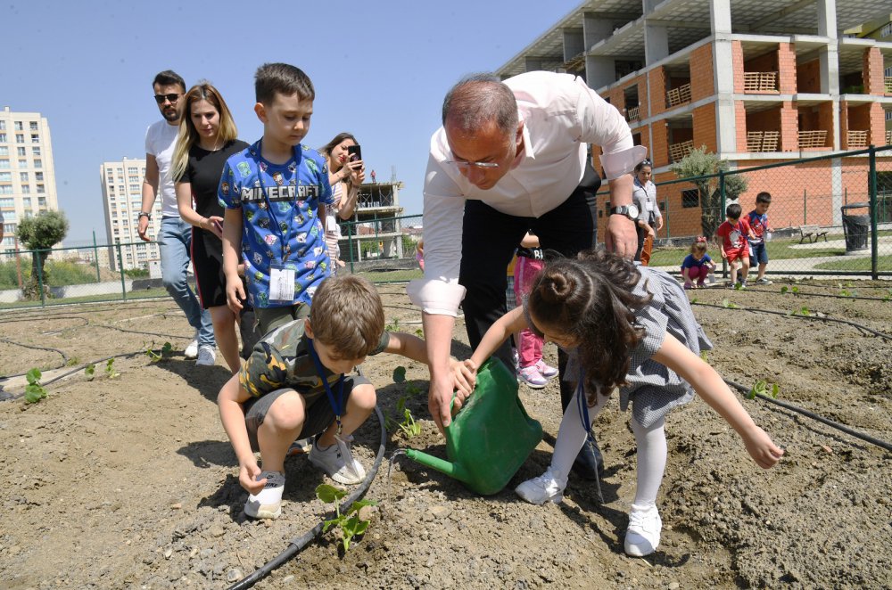 Çocuklarla birlikte fidelere ilk can suyunu veren Başkan Çalık, “Toprağa ve üretmeye önem veren bir anlayışla yol yürüdüğümüzü her fırsatta söylüyoruz. Bugün üretmenin ne kadar kıymetli ve değerli bir şey olduğunu evlatlarımıza göstermek ve onların farkındalıkla büyümesini sağlamak amacıyla bu etkinliği düzenledik. Evlatlarımız minik elleriyle, güzel enerjileriyle her bir fideyi toprakla buluşturdu. İnşallah burada hasadı da evlatlarımızla birlikte yapacağız. Burada ektiğimiz fideler ürüne dönüşecek ve o ürünlerin hasadını yapıp ihtiyaç sahibi ailelerimizin sofrasına ulaştırmış olacağız. Beylikdüzü üretmeye devam edecek.” ifadelerini kullandı.