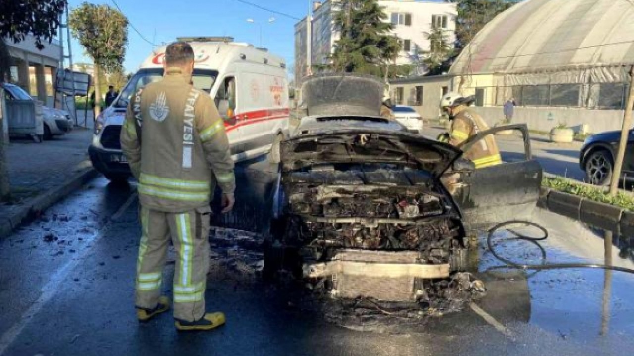 Büyükçekmece'de seyir halindeyken yanmaya başladıktan kısa süre sonra alevlere teslim olan araç itfaiye ekipleri tarafından söndürüldü.