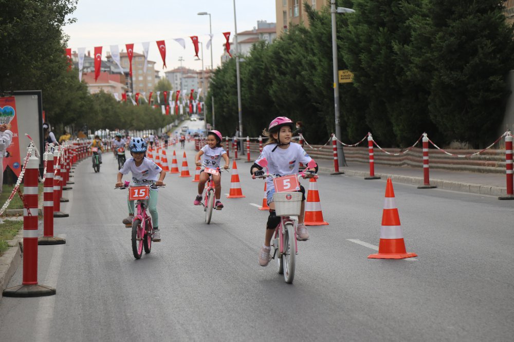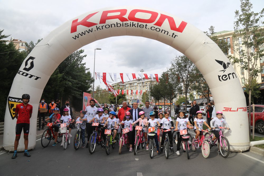Araç trafiğine kapatılan yolda coşku ve heyecanla yarışan çocukların bisiklet yarışına Büyükçekmeceli aileler büyük ilgi gösterdi.