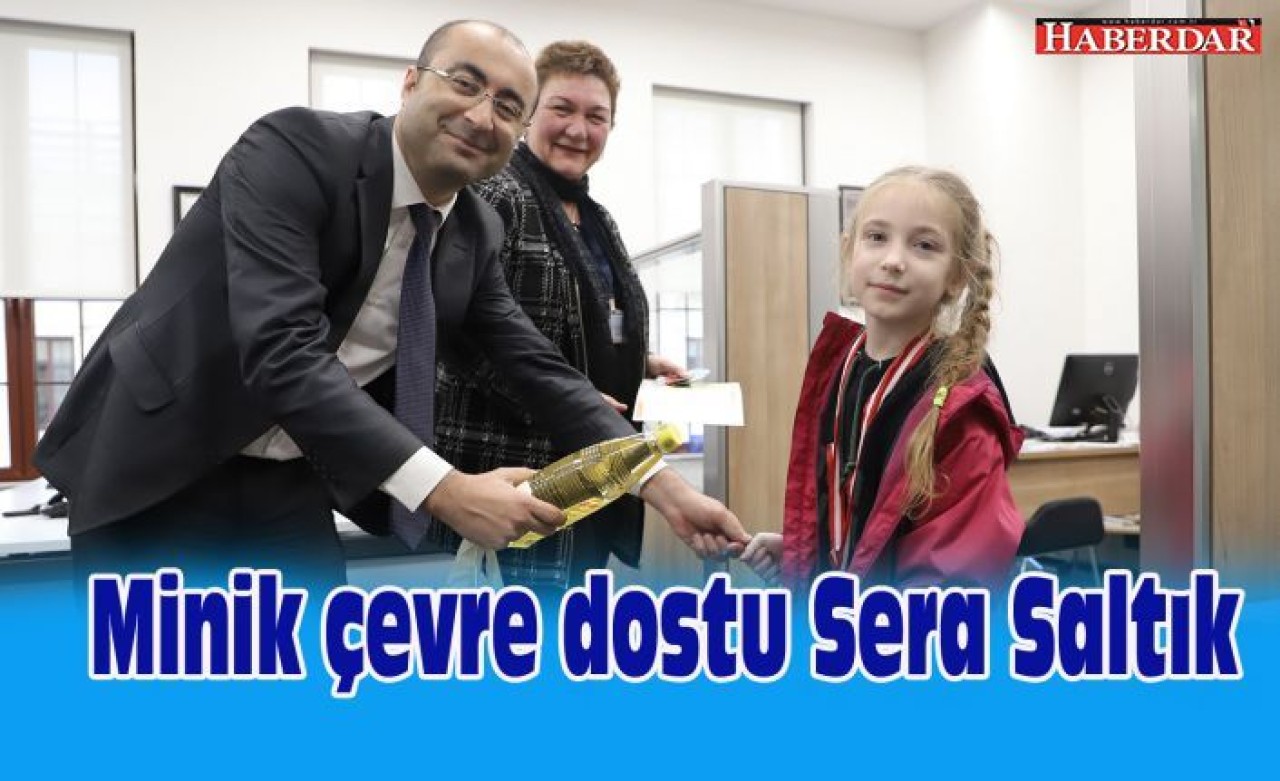 Topladığı 5 litrelik atık yağı belediye ekiplerine teslim eden çevre dostu Sera Saltık’a örnek davranışı ve geri dönüşüme katkıları nedeniyle 1 litre TSE belgeli temiz yağ ve tohum kart hediye edildi.