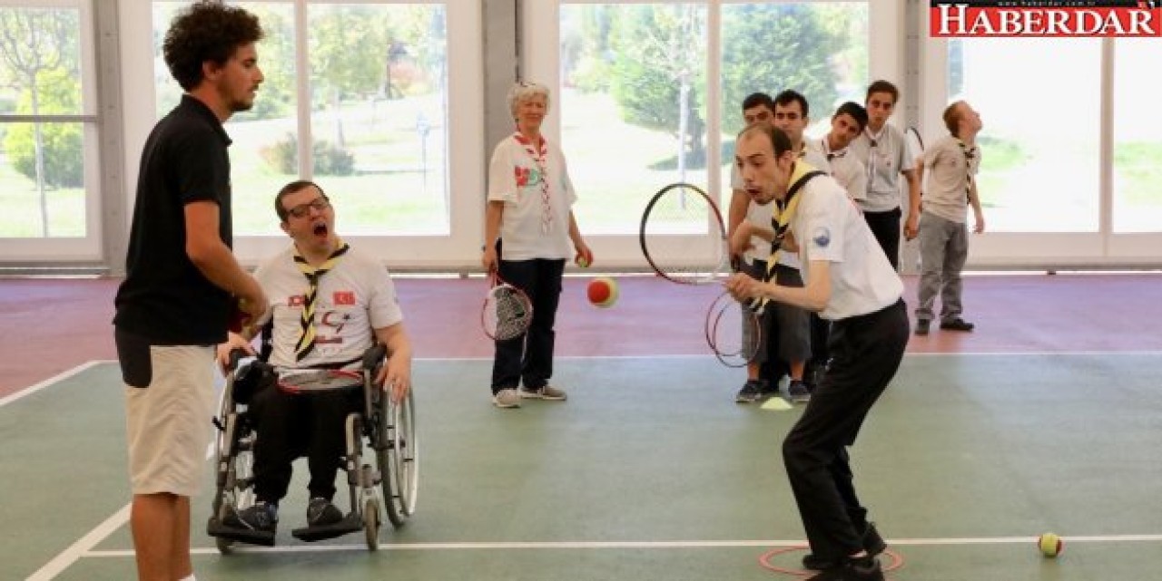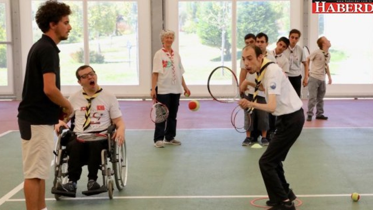 Mimaroba Türkan Saylan Spor Salonu’nda tenis derslerine katılan Gökkuşağı Engelli İzci Kulübü üyeleri, daha önce pek çok spor branşından ortaya koydukları başarılı performanslarını tenis sporunda da gösteriyor.