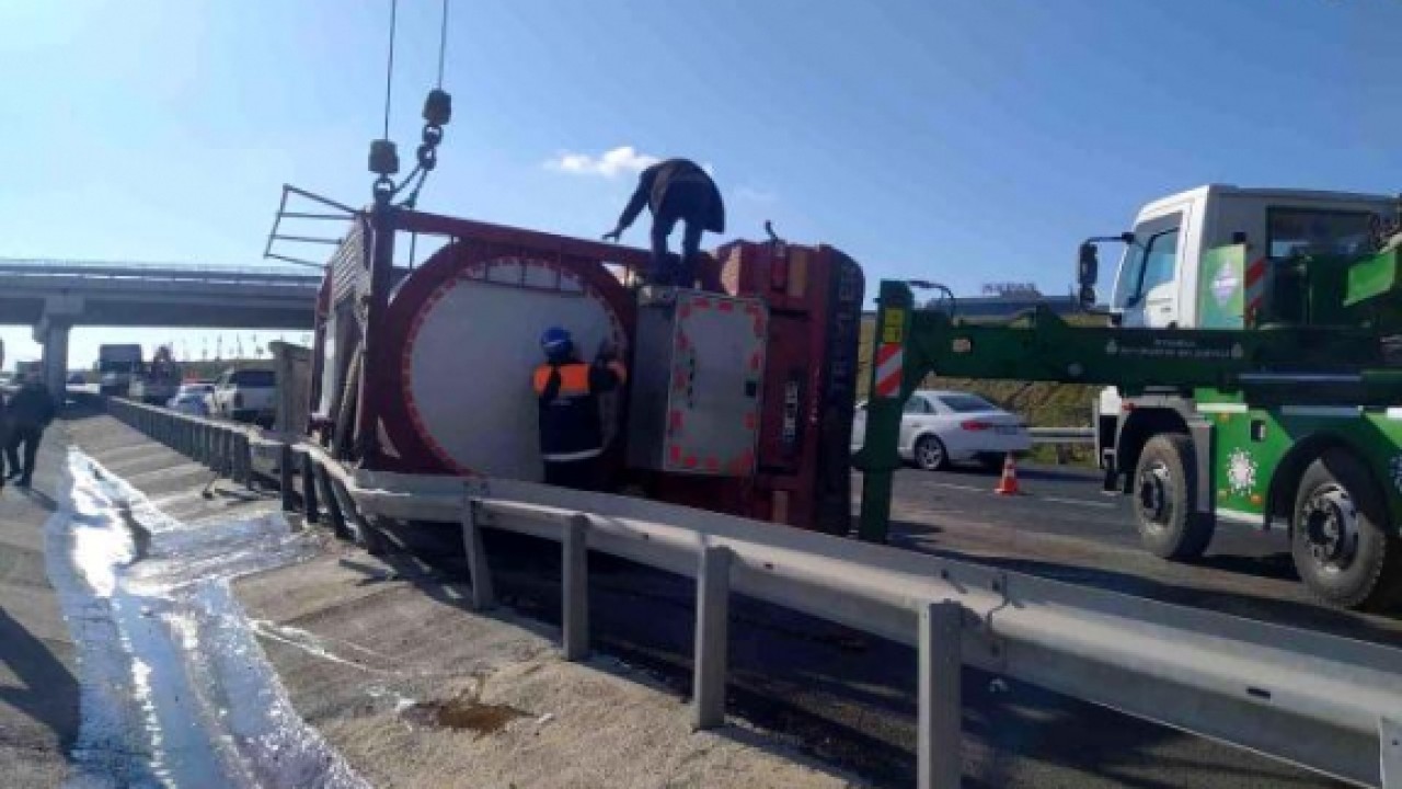Kaza, saat 12.00 sıralarında Kuzey Marmara bağlantı yolu Çatalca'dan Büyükçekmece İstikametinde Ahmediye mevkiinde meydana geldi. Yapıştırıcı yapımında kullanılan kimyasal madde yüklü tanker, Çatalca'dan Büyükçekmece istikametinde ilerlerken virajı alamayarak devrildi. İhbar üzerine olay yerine İtfaiye, polis ve Sağlık ekipleri sevk edildi.