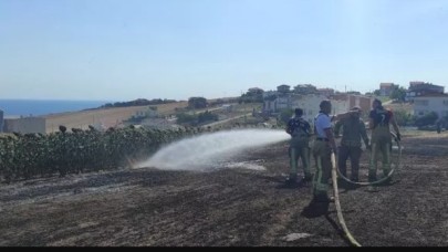 BÜYÜKÇEKMECEDE ANIZ YANGINI AYÇİÇEK TARLALARINA SIÇRAMADAN SÖNDÜRÜLDÜ