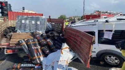Büyükçekmecede tırın bariyerlere çarptığı kazada sürücü yaralandı