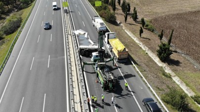 Büyükçekmece TEM Otoyolu Edirne istikametinde tır devrildi