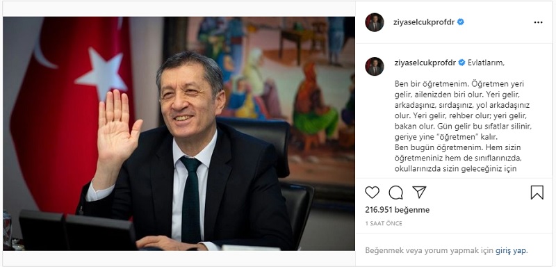 Selçuk mesajında, bugün itibarıyla hem öğrencilerin öğretmeni hem de sınıflar ve okullardaki öğretmenlerin meslektaşı olduğunu belirtti.