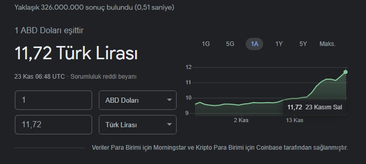 Bugün sabah saatlerinde 11,40 seviylerinde olan dolar, saat 09.51 itibarıyla 11,72 seviyesini gördü.