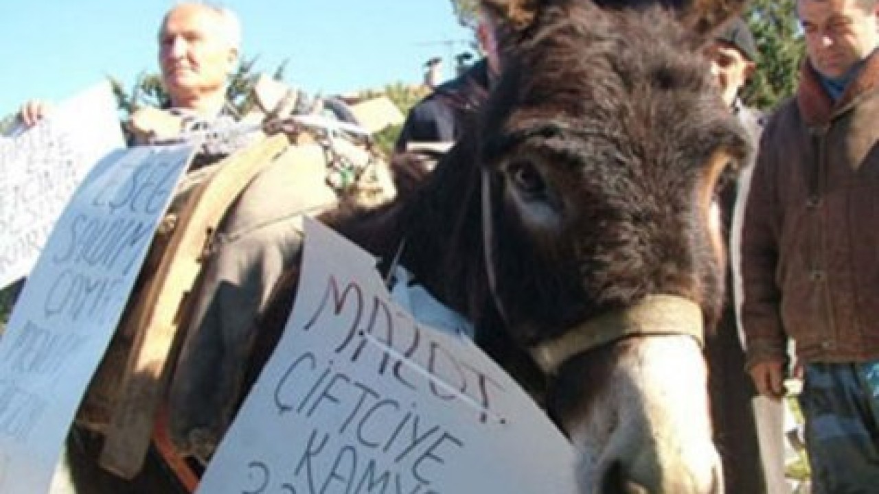 İlçe meydanında toplanan çiftçiler boyunlarına ve bir eşeğe, “Eşeği saldım çayıra, mevlam çiftçiyi mazot zamlarından koruya", “Fazla ezilmek istiyorsan AK Parti ye yanaş, ezilmek istemiyorsan AK Parti den kaçö, “Analarımızı ağlattınız, şimdi babalarımızı ağlatıyorsunuzö yazılı dövizler asıp, kaval çalarak, hükümete tepki gösterip, zamların geri çekilmesini istedi. Eylemci çiftçiler, daha sonra, polisin geniş güvenlik önlemi altında ilçe parkına kadar yürüdü.