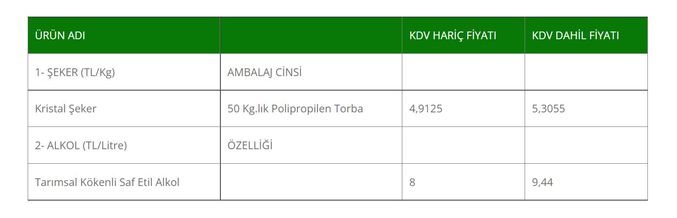 Türkşeker'in resmi internet sitesinde yer alan bilgilere göre, KDV hariç kilogramı 3,93 TL'den satılan kristal şeker fiyatı 4,9125 TL oldu. Kristal şekerin KDV dahil fiyatı ise 5,3055 olarak belirlendi.