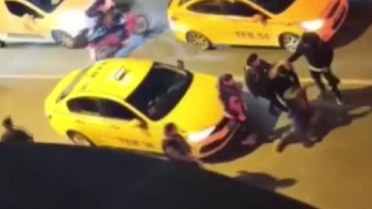 Çevredeki vatandaşların izlemekle yetindiği olayda dayak yiyen yolcu ise, taksicilere "Yapma" diyerek kaçmaya çalıştı. Yaşanan o anlar ise bir vatandaşın cep telefonu kamerasına saniye saniye yansıdı.