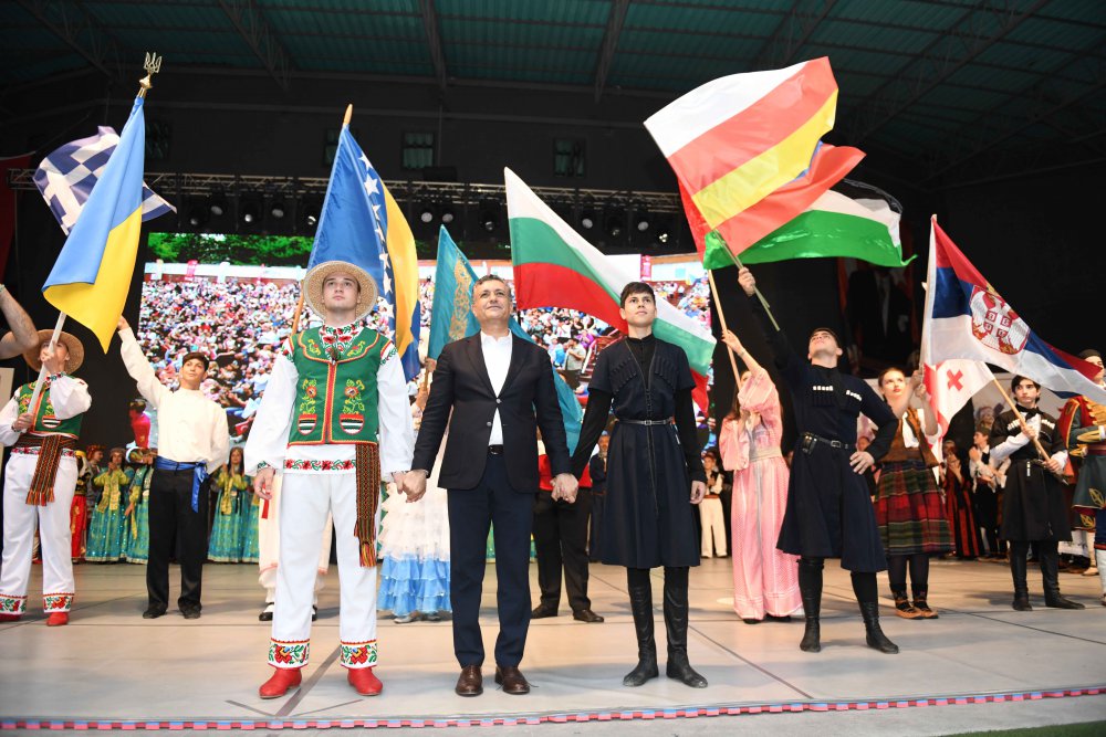 16 ülkeden gelen dans ve gösteri grupları açılış seremonisinde sahneye birlikte çıkarak birlik, beraberlik ve dostluk mesajı verdi. Ülkelerini temsil eden kültür elçileri ile sahnede bir araya gelen Başkan Bozkurt, savaş halindeki Ukrayna ve Rusya’dan gelen dansçılarla birlikte barış güvercini uçurdu. Esenyurtlular ise o sırada "Savaşa hayır!" sloganlarıyla barış ve kardeşlik mesajı verdi.
