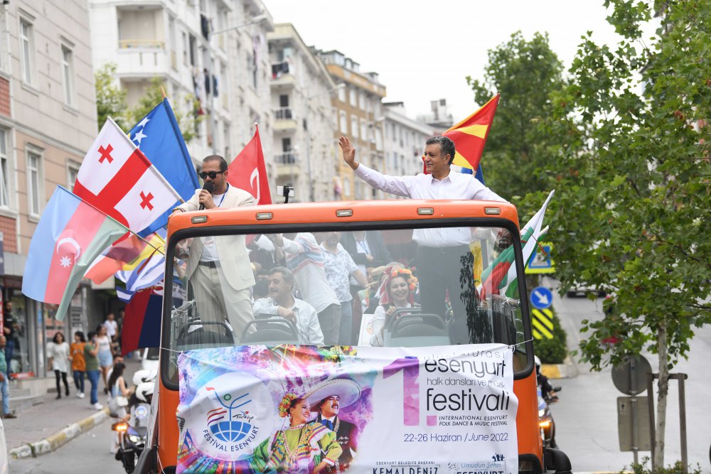 Esenyurt’ta ilk defa yapılan uluslararası festival, buluşma ve yürüyüş kortejiyle başladı. İlçe sakinlerini selamlayan Belediye Başkanı Kemal Deniz Bozkurt, vatandaşları görkemli festivale davet etti. Ülkelerinin kültürlerini temsil eden misafir gruplar, ilçenin parkları ve toplu konut bahçelerinde yaptıkları gösterilerin ardından yürüyüş korteji ile Esenkent Rıfat llgaz Açık Hava Tiyatrosu etkinlik alanına geçti. Yüzlerce kişiden oluşan kortej, Esenyurt Belediyesi’nin barış ve kardeşlik sahnesinde bir araya geldi. Saygı duruşu ve İstiklâl Marşı’nın ardından İBB bando ekibi kısa bir konser verdi. 16 ülkenin katıldığı festival coşkusuna siyasi partilerin ilçe başkanları, belediye başkan yardımcıları, Esenyurt Kent Konseyi, belediye meclis üyeleri, mahalle muhtarları ve sivil toplum kuruluşu temsilcilerinin yanı sıra binlerce Esenyurtlu ortak oldu.