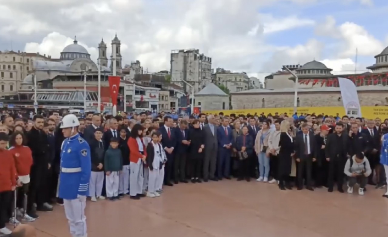 Törene başta İBB Başkanı Ekrem İmamoğlu olmak üzere çok sayıda siyasi parti temsilcisi ile birlikte gençler katıldı. Törende, sırayla partilerin çelenkleri Taksim Cumhuriyet Anıtı'na sunuldu.
