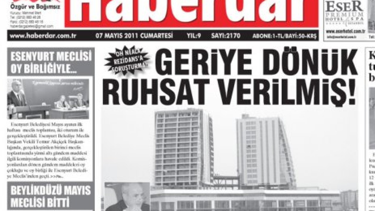 Büyükçekmece'de Yolsuzluklara ve Haksızlıklara Karşı Mücadele Derneği, Beykent'te yapılan Eresin Life Center'la ilgili Büyükçekmece Cumhuriyet Savcılığı'na suç duyurusunda bulundu. Büyükçekmece Cumhuriyet Savcısı Mustafa Kemal Gül 'İmar Kirliliğine Neden Olma' suçlamasyla Eresin Life Center projesiyle ilgili olarak inceleme başlattı. Bilirkişilerin inşaatla ilgili hazırladığı raporlarda bulunan Yapı Ruhsat belgesinin belediyenin başını ağrıtacağa benziyor.