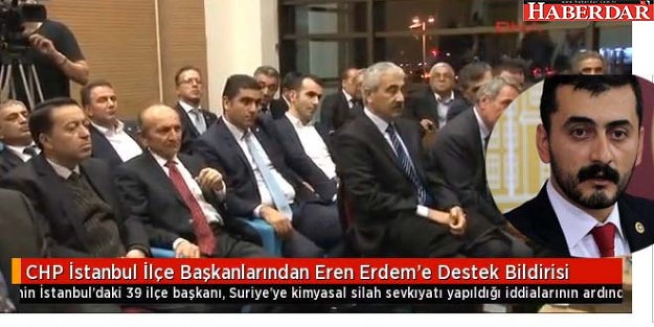 CHP'nin İstanbul'daki 39 ilçe başkanı, Suriye'ye kimyasal silah sevkıyatı yapıldığı iddialarının ardından tartışmaların hedefi olan CHP İstanbul Milletvekili Eren Erdem'e destek için bildiri yayımladı.