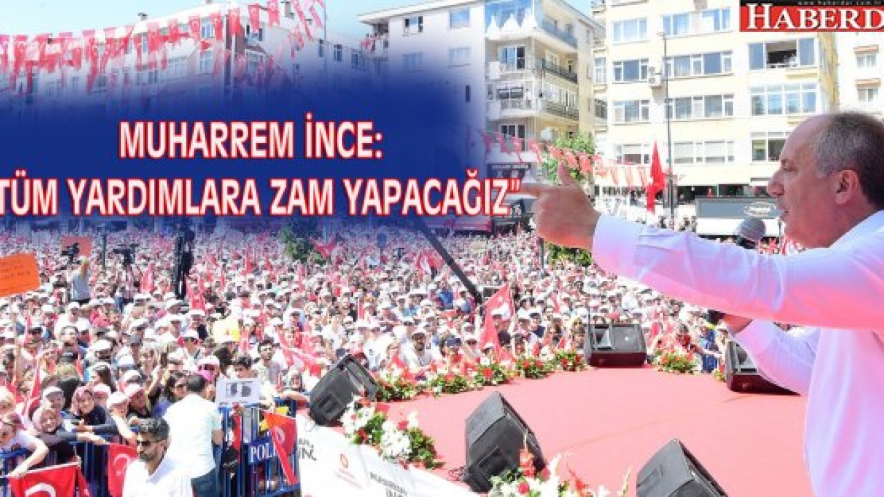 CHP’nin Cumhurbaşkanı adayı Muharrem İnce, 103. Mitingi için bugün Tekirdağ’ın ilçesi Çorlu’daydı. Burada halka seslenen İnce, "Yaşlılık yardımı, eğitim yardımı, muhtaç asker ailesine yardım gibi bu tür yardımları alan gariban yurttaşlarımıza bunların hepsine hemen zam yapacağız" dedi.