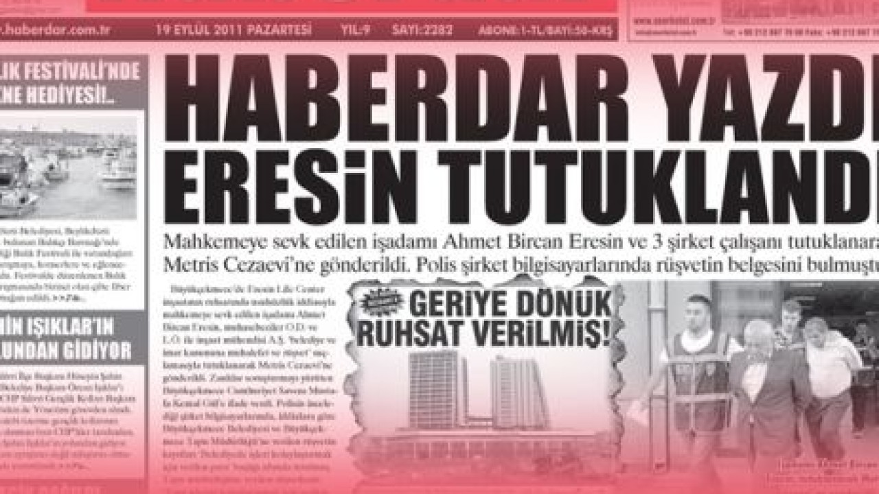 Geriye dönük düzenlenen ruhsatla iki rezidans yapan Ahmet Bircan Eresin'in 'Paraları dağıtın' talimatıyla şirketin muhasebesi verilen rüşveti kalem kalem kaydetmiş. Polis, şirket muhasebecisi A.K.'nin ofisinde kullandığı bilgisayarın hard diskini inceleyen polis muhasebeci K.'nın rüşvetleri kuruşu kuruşuna kaydettiğini gördü. Şirketin illegal işlerini rüşvetle hallettiği, kamu görevlilerine sigara, yemek ve pasta aldığı da muhasebe kayıtlarına geçirilmiş.