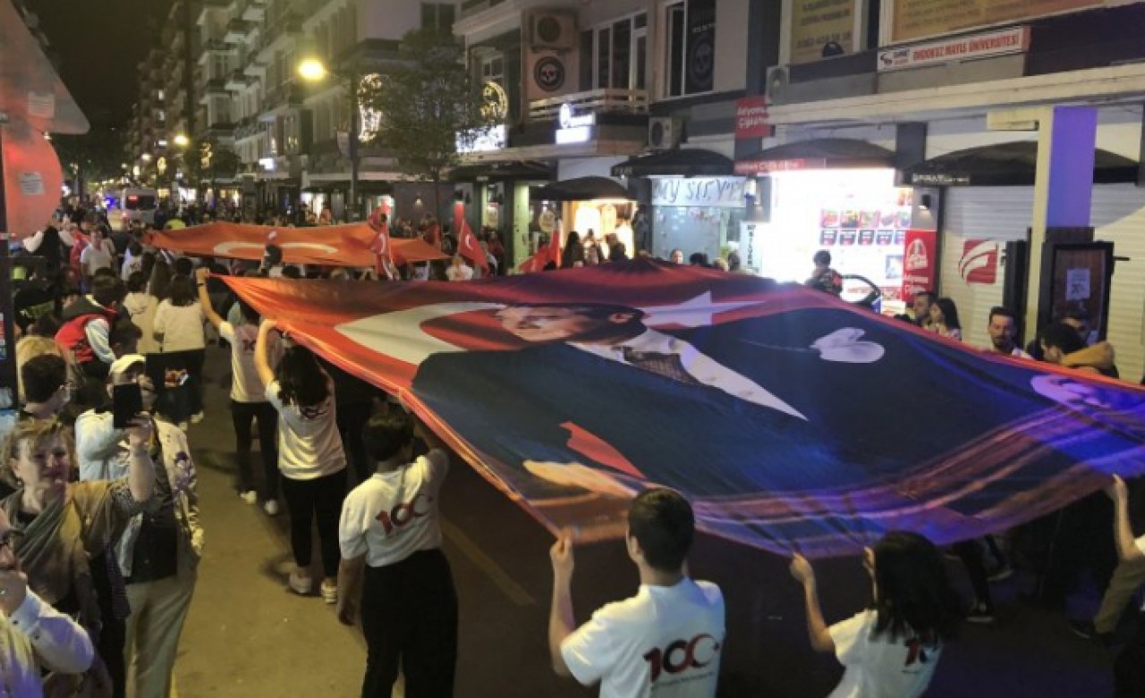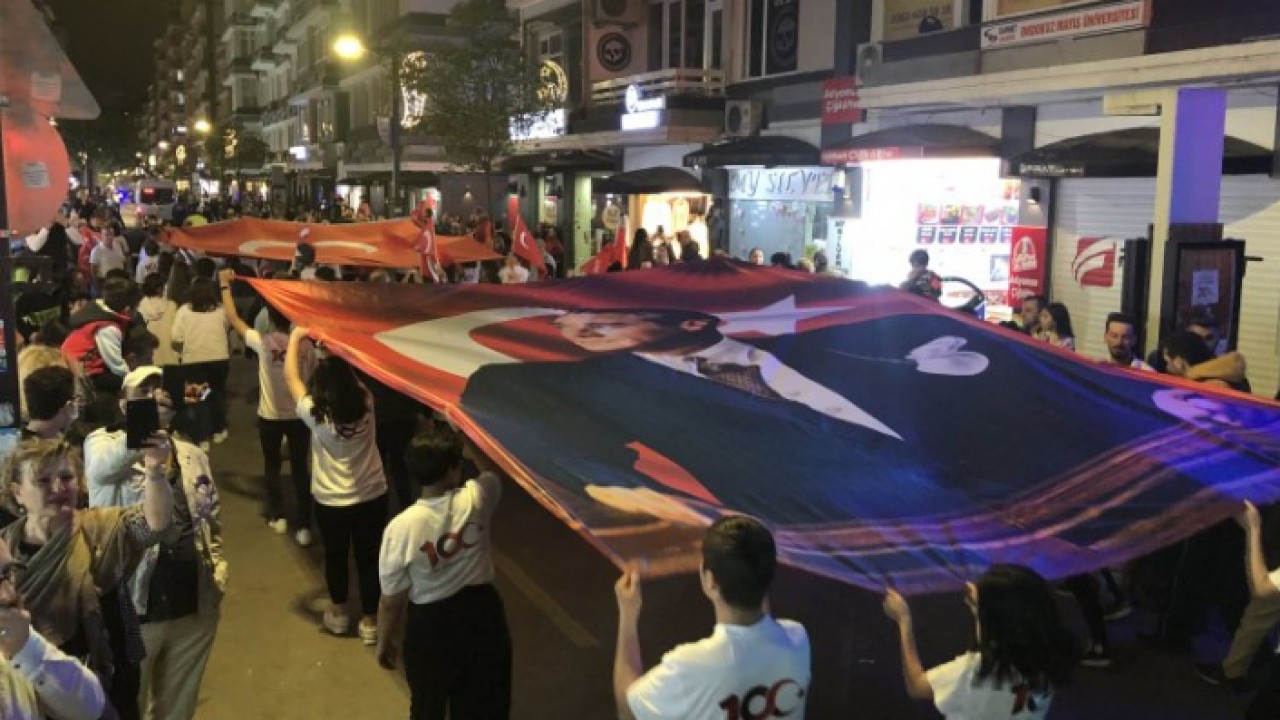 Devlet Su İşleri 7. Bölge Müdürlüğü önünde toplanan yaklaşık 10 bin kişi ellerinde Türk bayraklarıyla İstiklal Caddesi'nden yürüyerek Atatürk’ün kentte il ayak bastığı yer olarak kabul edilen Tütün İskelesine gitti.