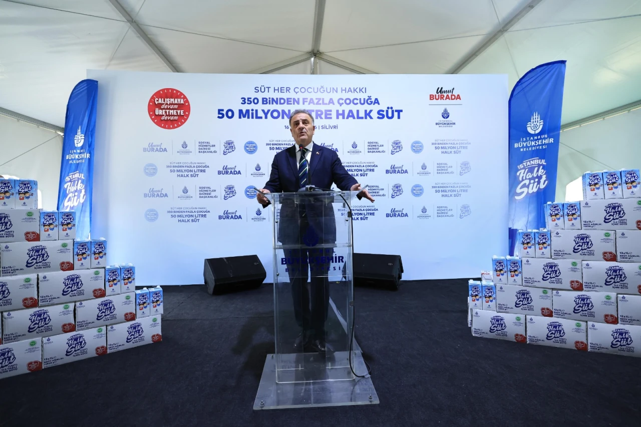 İBB Başkanvekili Nuri Aslan, "50 Milyon Litre Halk Süt Dağıtımı Tanıtım Programı"ndaki konuşmasında “Size mi kaldı diyorlardı, dile kolay 50 milyon litre süt ulaştırdık. Yaklaşık 5 bin tır demek yani buradan Saraçhane’ye tırları arka arkaya dizseniz bütün o trafiği kapatacak kadar tırla sütleri çocuklarımıza ulaştırdık. 350 bin çocuğumuza ulaştık. Aileleriyle birlikte neredeyse 1 milyon İstanbulluya destek olduk” dedi.