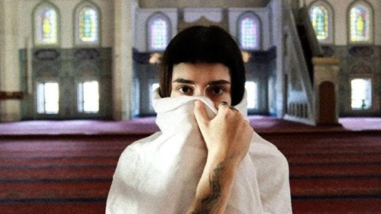 Model kısa bir tişört giyerek, başörtüsü, takke ve tespih takarak namaz hareketleriyle poz vermişti. Çekilen görüntüler "Zıtlıkların büyüsü" başlığıyla paylaşıldı.