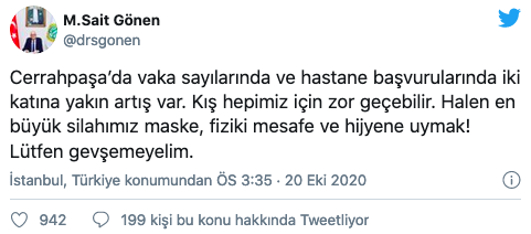 * Cerrahpaşa'da vaka sayılarında ve hastane başvurularında iki katına yakın artış var.