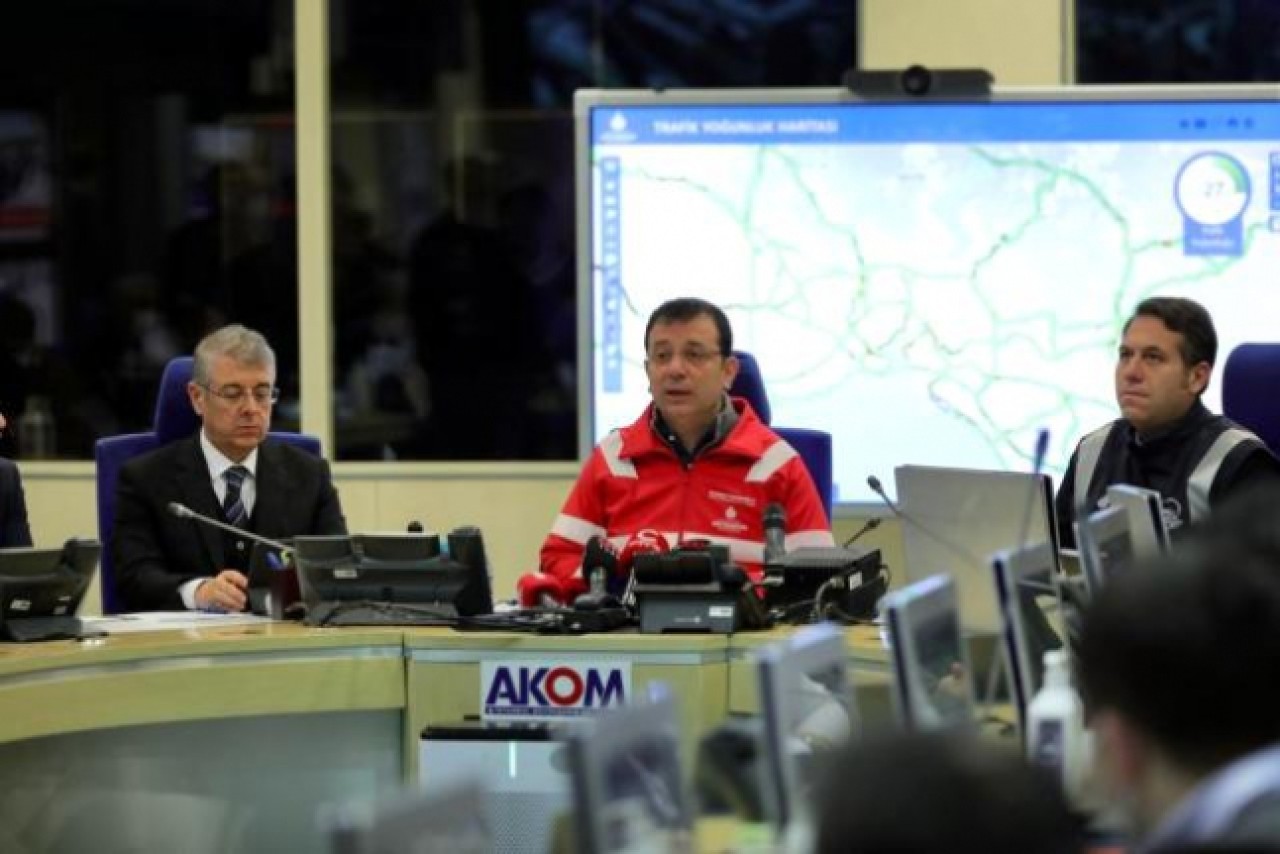 İBB'nin sorumlu olduğu alanlarda 12 saat içerisinde akışkanlığı sağladıklarını söyleyen İmamoğlu, "İBB olarak sorumlu olduğumuz alanlarda 12 saat içerisinde karın başladığı andan, büyük bir ekiple akışkanlığı sağladığımızı ve insanlarımızın o yolları kullanma imkanlarını sağladığımızı duyurmak isterim. Bu gerçekten başarılı bir zaman dilimidir. İnsanlarımızın araçlarını bırakması halinde bile evlerine erişebilmesi noktasında özellikle kar yağışı Kuzey'den ve Avrupa yakasında etkili oldu. Çatalca - Arnavutköy - Sarıyer hattından başlayıp, Başakşehir - Esenyurt - Beylikdüzü hattında D-100 karayolunda etkili olabileceğini biliyorduk. Burada kesintisiz metrobüs hatlarını çalıştırdık. Hiç kesintiye uğramadı. Metrobüs güzergahında 33 iş makinamız sürekli çalıştı. O bölgede bulunan ilçe belediyelerini bizzat aradım. O bölgede görev yapmış yaşamış birisiyiz. 2004'te 17 saat araçta mahsur kalmış birisiyim. Araçların temini ile özellikle metrobüs duraklardan açık olan yollardan evlerine nakillerinin sağlanması hususunda ilçe belediye başkanlarından destek istedim" dedi.