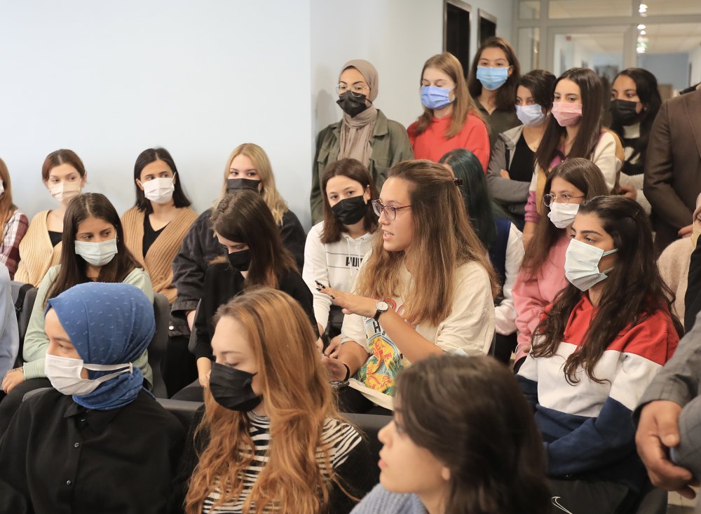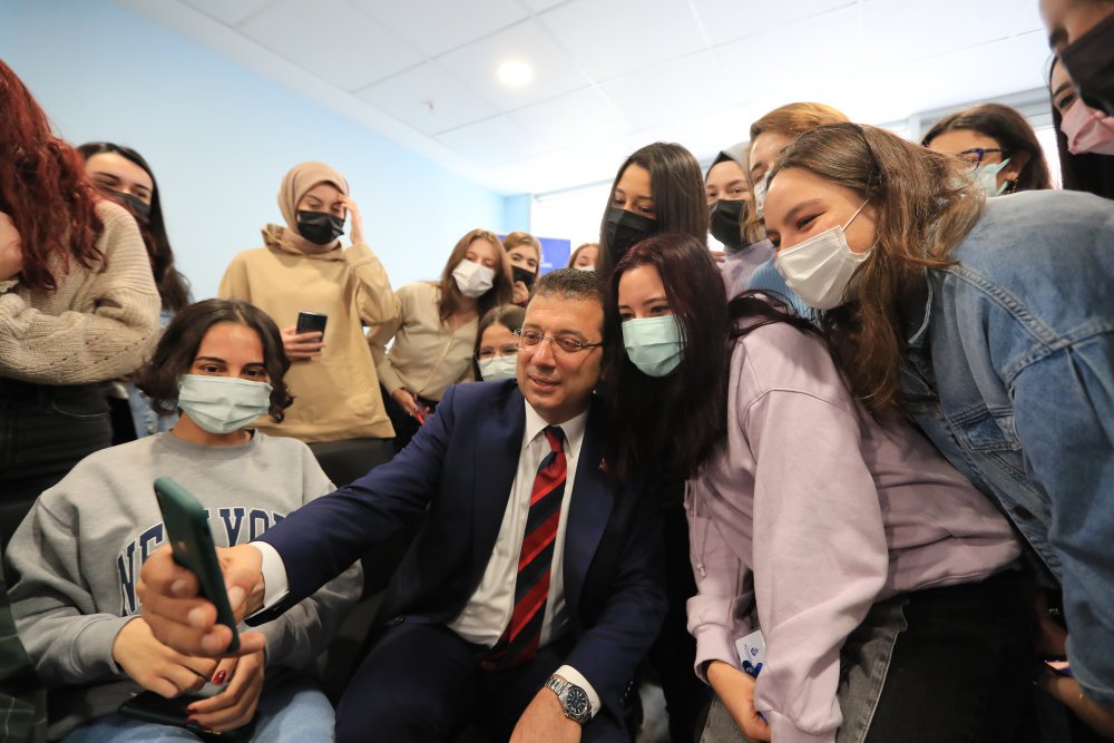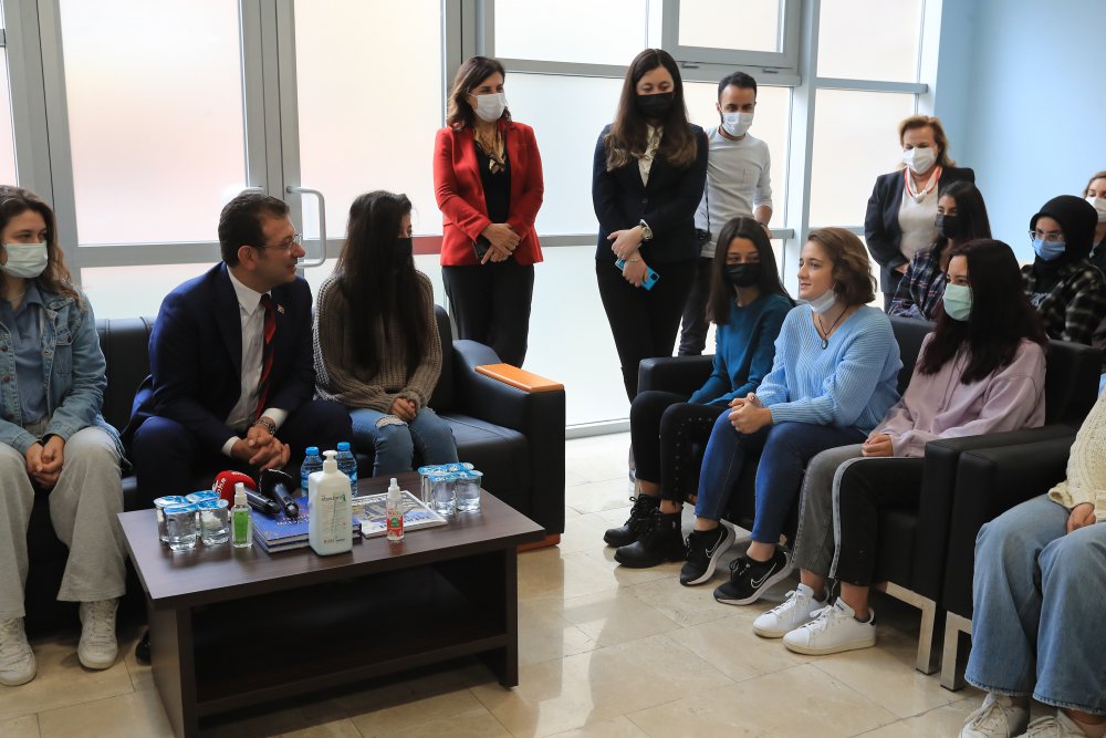 İmamoğlu ile bir araya gelen öğrenciler de görüşlerini ve sorularını İBB Başkanı’na iletme fırsatı buldu. İmamoğlu, Antalya’dan geldiğini söyleyen bir öğrencinin, “Öncelikle teşekkür etmek istiyorum burayı bize açtığınız için. Çünkü eğer burası olmasaydı ben şu an okuyamıyor olacaktım” sözlerine, “Olur mu öyle? Bir şekilde okuturduk seni” şeklinde karşılık verdi. Öğrencilerin Türkiye’nin farklı illerinden geldiğini öğrenen İmamoğlu, “Tolerans, hoşgörü çok önemli. Karşınızdaki insana saygı göstermek, muazzam önemli bir şey. Ve bunu burada tadın, yaşayın. Burada yaşadıklarınız toplumsal barışın da bir güvencesi. Burada yaşadığınız o güzel duyguları, ailelerinizle paylaşın. Birbirinizi anladıkça, ailelerinizle paylaştıkça onlar da aslında bu güzel ülkenin ne kadar güzel gençleri olduğunu hissedecekler. ‘Aslında yok birbirimizden farkımız’ diyecekler” ifadelerini kullandı.