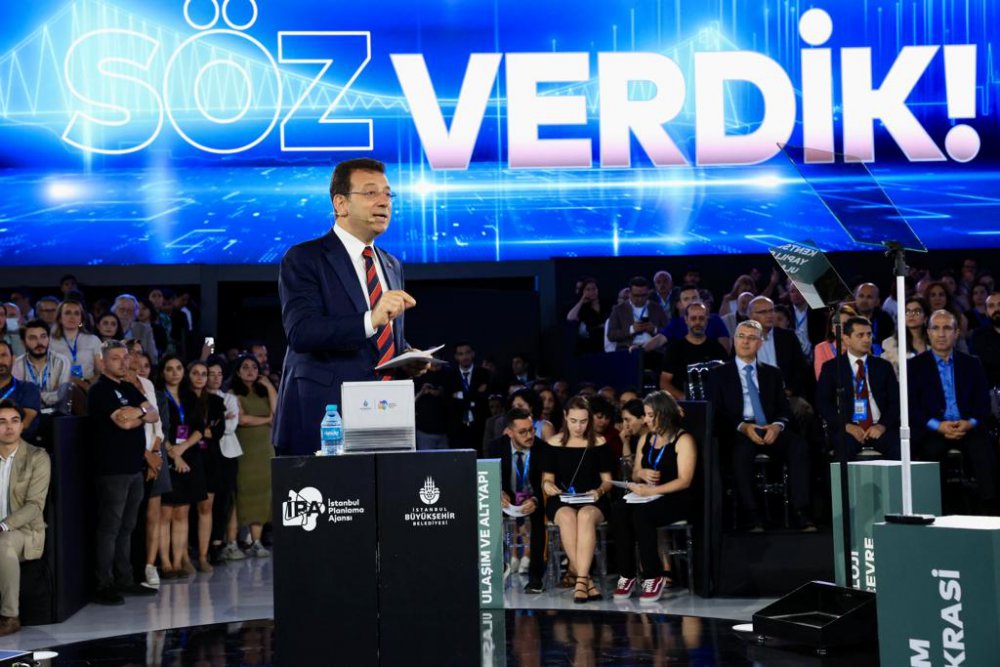 Sözlerine, “Binlerce yıldır arşınlanan bu sokaklarda, medeniyetlerin, imparatorlukların başkenti İstanbul’da, üç yıl önce ‘yeni bir başlangıç’ yapmak üzere yola çıktık” şeklinde başlayan İmamoğlu, “Bu yolculuğu kimseyi geride bırakmadan, 16 milyon İstanbullu ile yapacağımızı ve birlikte başaracağımızı daha ilk günden söylemiştik. Gazi Mustafa Kemal Atatürk’ün bizlere hedef gösterdiği onurlu, huzurlu ve müreffeh geleceği hep birlikte inşa edeceğimize söz vermiştik. Krizlerin ortasında kalmış, yönünü kaybetmiş, sıkışmış, nereye gideceğini bilemeyen bu kadim kenti ortak akılla, ortak çabayla, bilimin yol göstericiliğinde, doğasına, tarihine, kültürüne, değerlerine sahip çıkarak ve İstanbulluların mutluluğunu önceleyerek yöneteceğimize hep birlikte söz verdik. Sözü büyütmek için, hayalleri planlara, planları da gerçeğe dönüştürmek için, geleceğe hep birlikte yürümek için yola çıktık” ifadelerini kullandı.