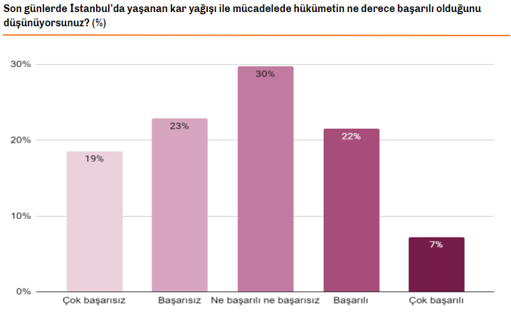 "Bugün karla mücadelede kim başarılı, kim başarısız uzunca tartıştık. Sizlerle 25 Ocak 2022 tarihinde İstanbul çapında 39 ilçede 800 kişi ile yaptığımız anket çalışmasının sonuçlarını paylaşmak isterim. Araştırma, 25 Ocak 2022 tarihinde İstanbul Ekonomi Araştırma mobil paneli üzerinden yapılmış ve şirketin öz kaynakları ile finanse edilmiştir."