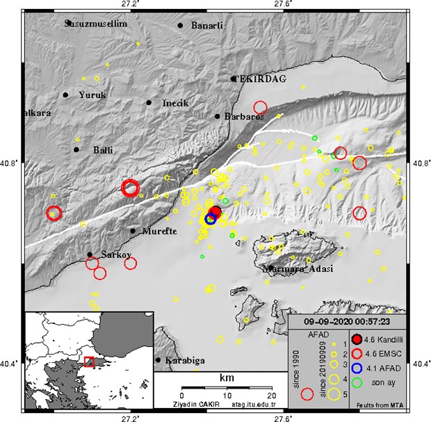 "Marmara’da olan depremler ana fay üzerinde değil" diyen Görür, "Muhtemelen Tekirdağ Havzasını güneyden sınıralayan eğim atımlı faylarla ilgili olabilir" dedi.