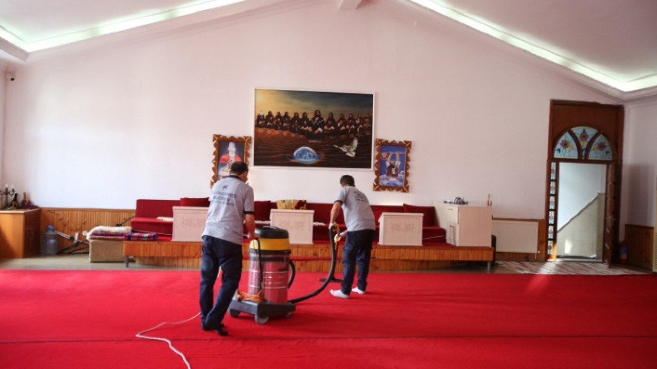 Destek Hizmetleri Müdürlüğü’ne bağlı ekipler, cami ve cemevlerinde halılardan, kapı kollarına, ayakkabılıklardan, dolaplara her noktayı tek tek temizliyor. Çevre Koruma ve Kontrol Müdürlüğü ekipleri ise ibadethanelerin şadırvanları ve avlularında temizlik çalışmasına devam ediyor. Çalışmalar kapsamında, cami içindeki halıları profesyonel makinelerle süpüren ekipler, kapı, cam ve duvarları silerek, dezenfeksiyonlarını gerçekleştiriyor.
