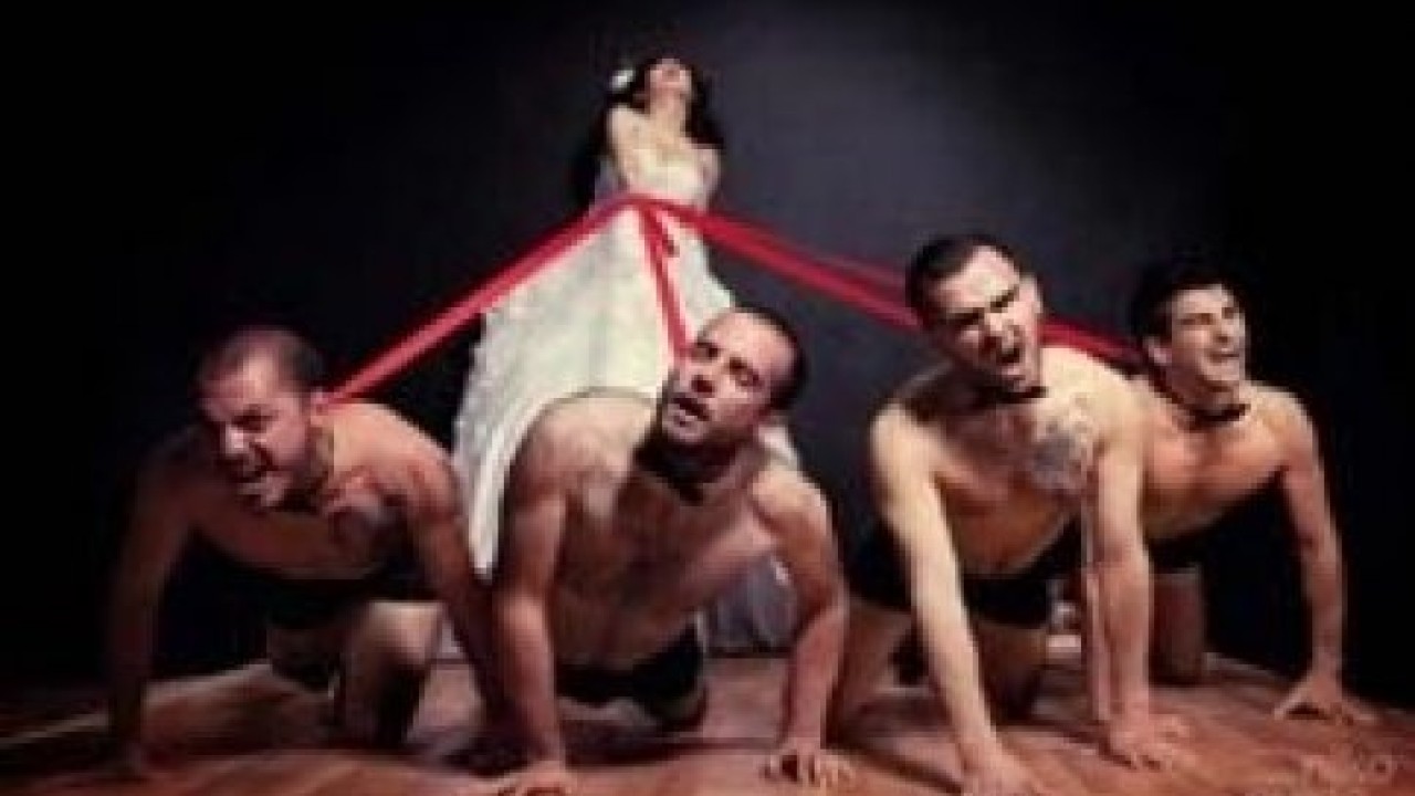 Guido gelinlik giymiş bir kadını, üzerlerinde sadece iç çamaşırı bulunan dört erkekle fotoğraflayıp, ’bir erkeğe dört kadın’ görüşüne yanıt verdi.