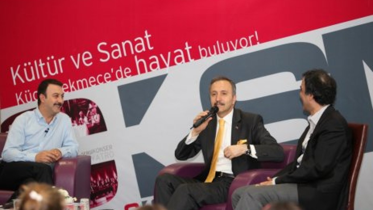 Söyleşinin moderatörü Küçükçekmece Belediyesi Kültür Merkezleri Genel Sanat Yönetmeni Levent Tülek ile keyifli bir sohbet gerçekleştiren Yılmaz, esprileriyle salondakileri güldürdü.