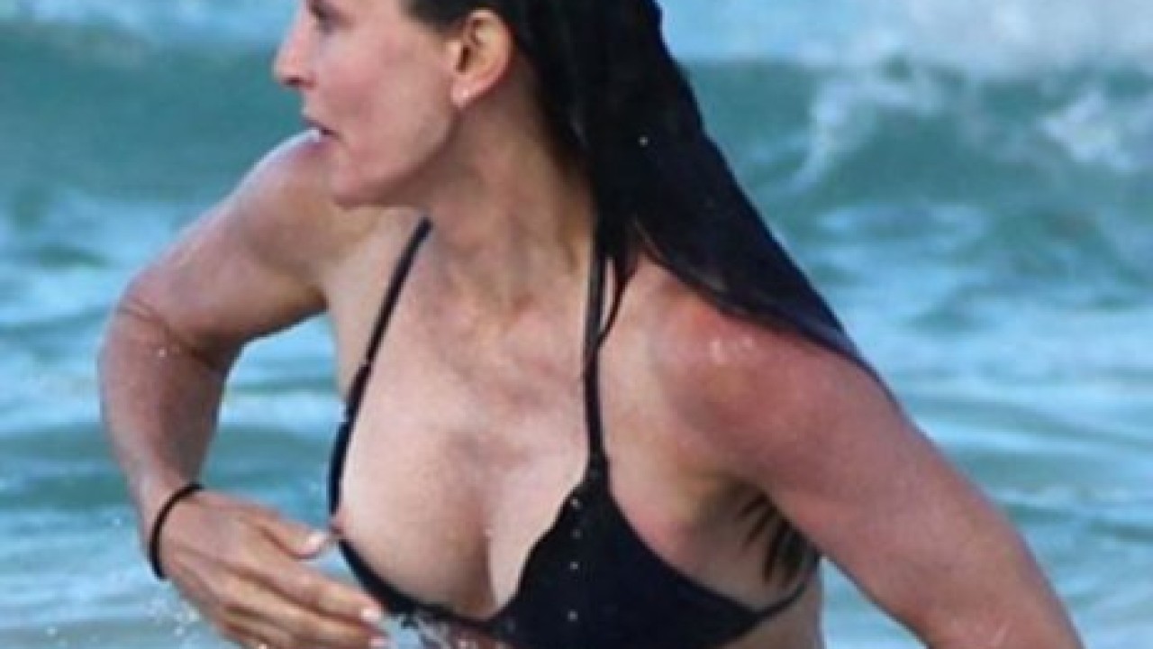 Cougar Town dizisindeki rol arkadaşı Josh Hopkins'le birlikte denizin tadını çıkarmak isteyen Cox, dalgaların bikini üstünü sıyırmasına engel olmayınca paparazziler fırsatı kaçırmadı.