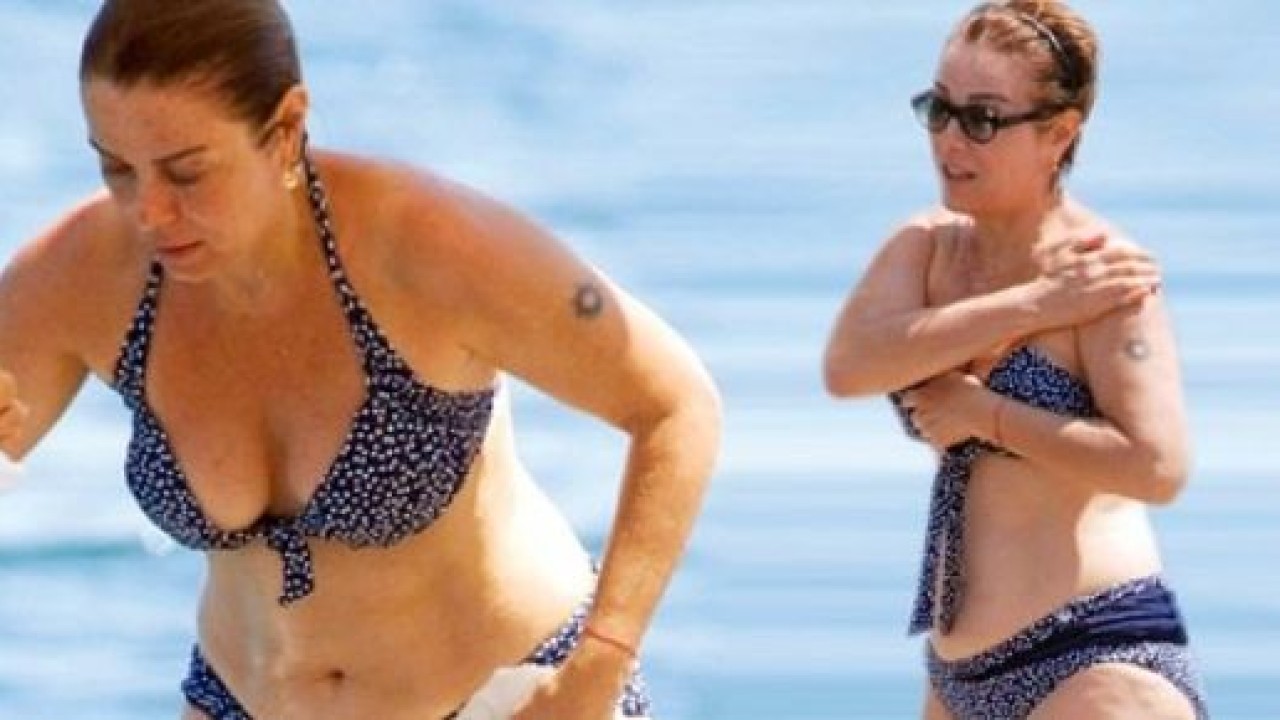 Ancak muhabirleri fark edince tadı kaçtı. Bikinili görüntülenmek istemeyen sanatçı, önce havlusuna sarındı, sonra da garsonlara muhabirleri uzaklaştırmaları için talimat verdi. Güneşten korunmak için şemsiye büyüklüğünde bir hasır şapka takan Olcay, böylece sadece yüzünü değil neredeyse tüm vücudunu korumayı başardı.