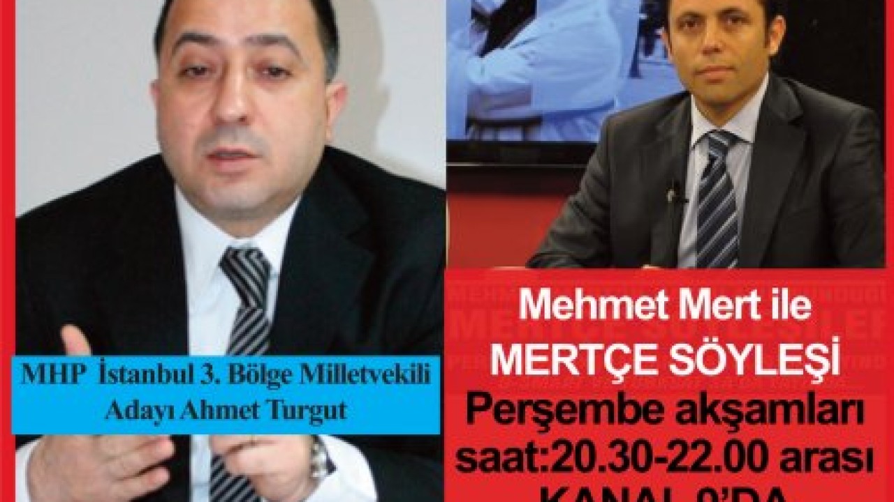 Milliyetçi Hareket Partisi İstanbul 3. Bölge Milletvekili Adayı ve 2009 Yerel Seçimlerinde MHP İstanbul Büyükşehir Belediye Başkan Adayı Ahmet Turgut Kanal 9’da yayınlanan Mehmet Mert ile MERTÇE SÖYLEŞİ konuğu.