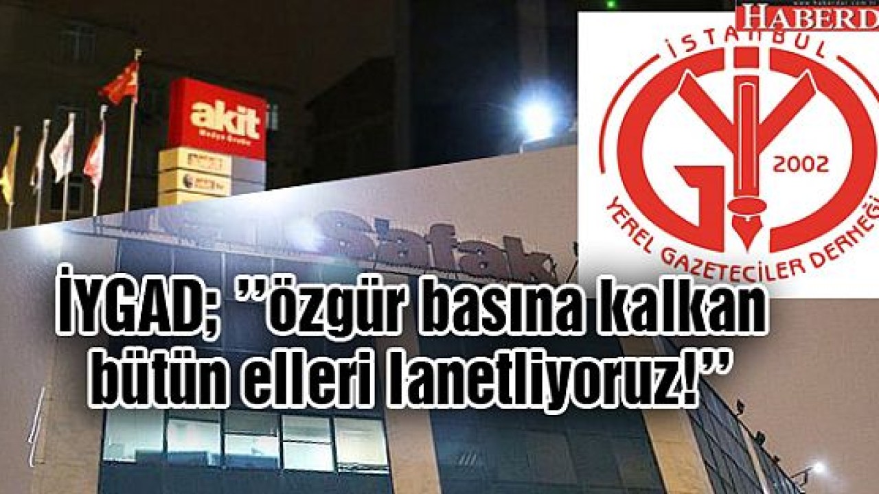 İstanbul Yerel Gazeteciler Derneği (İYGAD); Yeni Şafak ve Yeni Akit'e gerçekleştirilen saldırıyı kınayarak; ''özgür basına kalkan bütün elleri lanetliyoruz!'' dedi.