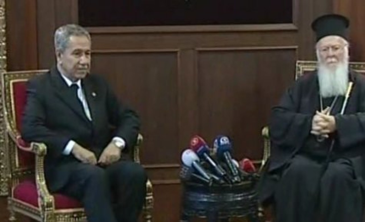 Sabah 09:00'da patrikhaneye gelen Arınç, Fener Rum Patriği Bartholomeos tarafından karşılandı. İkili yaklaşık 1 saat başbaşa görüştü. Görüşmenin ardından Arınç ve Bartholomeos basın mensuplarının karşısına çıktı. Patrikhaneyi ilk kez ziyaret ettiğini belirten Arınç, ziyaretinin iki sebebi olduğunu söyledi. İlk sebep olarak yeni yıl kutlamasını gösteren Başbakan Yardımcısı Bülent Arınç, ziyaretinin ikinci sebebinin geçen yıl Büyükada'da yapılan toplantıda patriğe ziyaret sözü vermesi olduğunu söyledi.