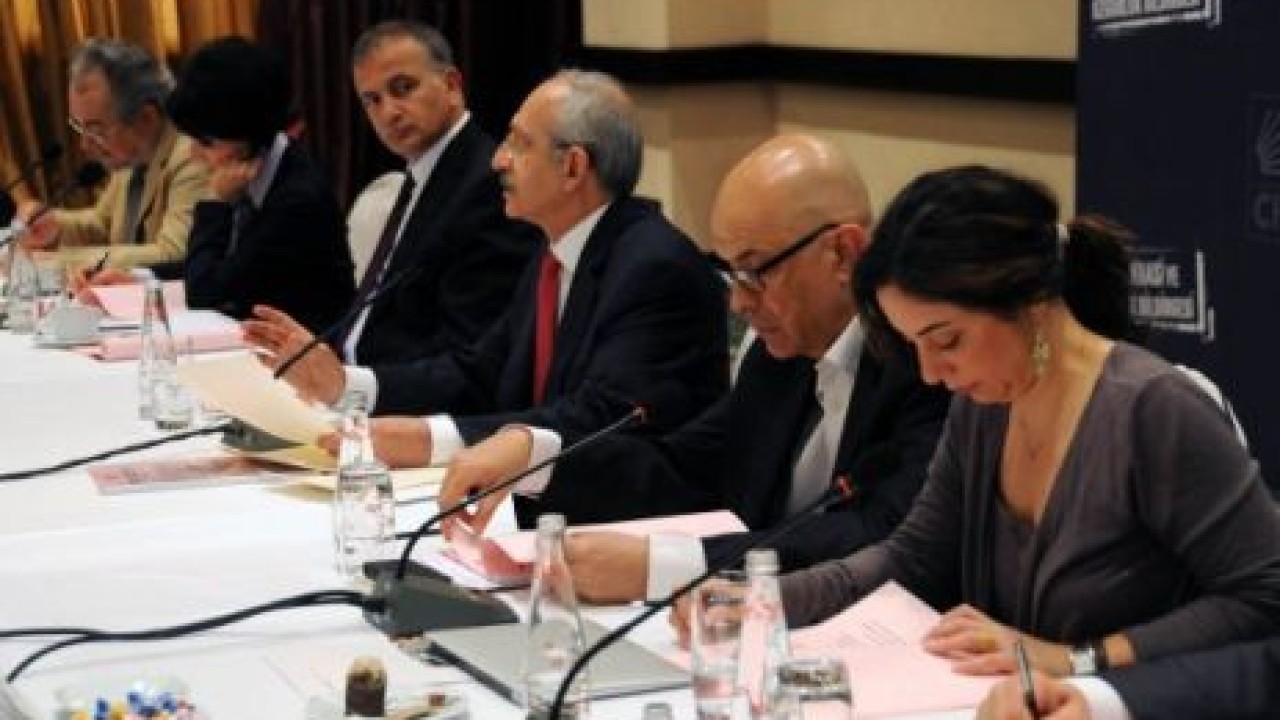 CHP Genel Başkanı Kemal Kılıçdaroğlu, gazetelerin genel yayın yönetmenleriyle Swiss Otel'de biraraya geldi. Demokrasi ve Özgürlük Bildirgesi konulu toplantıda konuşan Kılıçdaroğlu, çözüm süreciyle ilgili CHP'ye yöneltilen eleştirilere yanıt verdi. Kılıçdaroğlu, 'Demokrasi ve Özgürlük Bildirgesi'yle CHP'nin hangi şartlarda çözüm sürecine destek vereceğini anlattı. Toplantıya CHP Genel Başkan Yardımcıları Gürsel Tekin, Sezgin Tanrıkulu, Umut Oran ile CHP milletvekilleri katıldı.