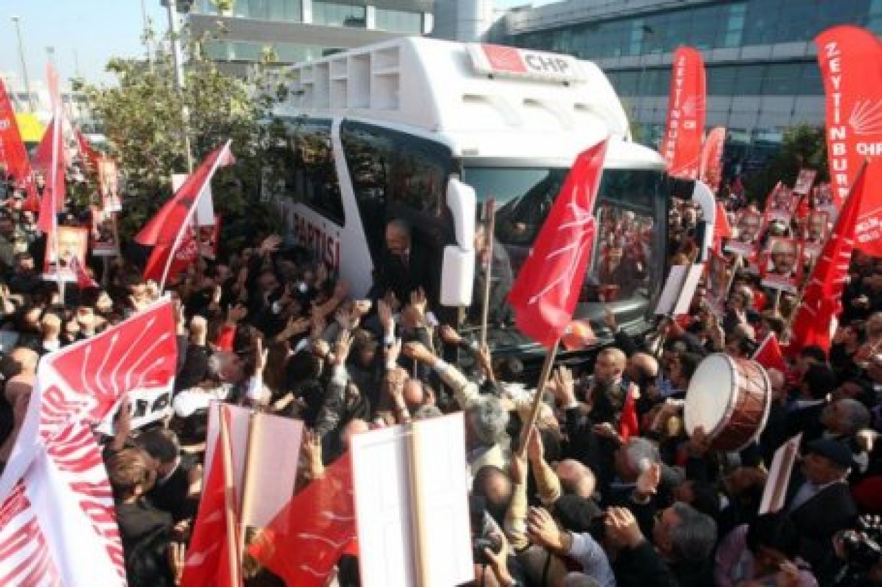 - CHP Genel Başkanı Kemal Kılıçdaroğlu, dün sabah parti genel merkezine gitmek üzere evinden ayrılırken gazetecilerin “Seçimli kurultayın düşünülüp düşünülmediği” sorusuna, “Örgütümüz isterse seçimli kurultay olur. Ancak böyle bir şey şu an için söz konusu değil” yanıtını verdi. Kılıçdaroğlu tarafından, yürürlükte bulunan tüzük uyarınca görevlendirilen yeni MYK 3’üncü kez toplandı. Kılıçdaroğlu başkanlığında saat 10.30’da toplanan ve yaklaşık 2 saat süren MYK’da, son gelişmeler değerlendirildi. Ancak herhangi bir açıklama yapılmadı.