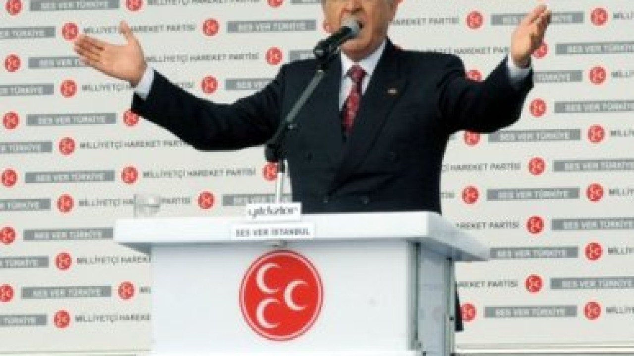 AKP'nin bir kez daha iktidara gelmesi halinde yeni anayasayla Türkiye'yi böleceğini savunan Bahçeli, şöyle devam etti: ''Cumhuriyet'i tasfiye edecektir. Bu gerçeği deşifre ettiğimiz için dedikodunun ve saldırıların hedefindeyiz. Başbakan'a göre MHP engeldir. Değil Mecliste siyasette bile olmamalıdır. Nasıl olsa ona göre MHP'ye gönül vermişler katildir, faşisttir, kafatasçıdır ve kandan beslenmektedir. Başbakan bilmelidir ki sonu ne olursa olsun inandıklarımızdan, güçlerimizden, heyecanlarımızdan ve hedeflerimizden asla geri adım atmayacağız.''