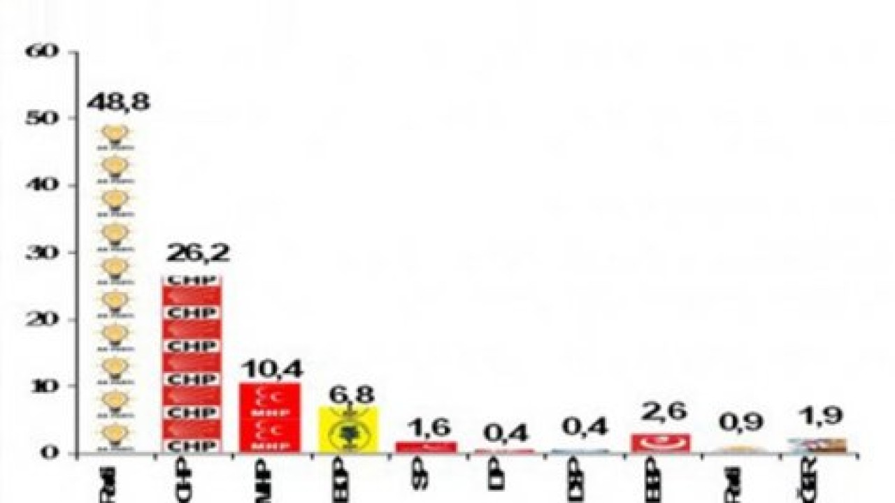 Andy-Ar şirketinin 20 ilde toplam 5 bin 106 kişi ile yapılan görüşmeyle elde ettiği anket sonuçlarına göre Ak Parti yüzde 48.8 oranıyla ilk sırada. CHPyüzde 26.2 oy oranıyla ikinci sırada yer alırken MHP yüzde 10. 4 ile baraj sınırında. Andy-Ar anketinde en dikkat çekici oranlardan birisi de BDP'nin oy oranı.